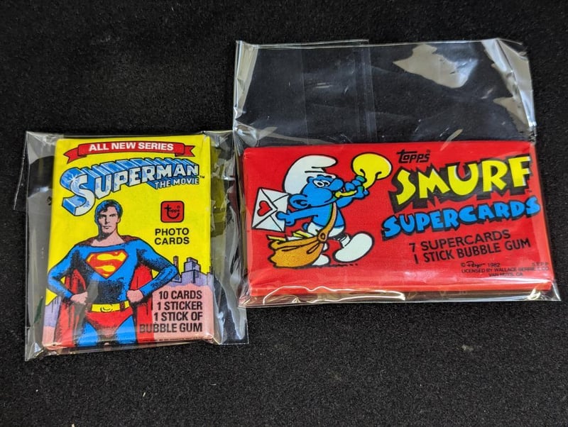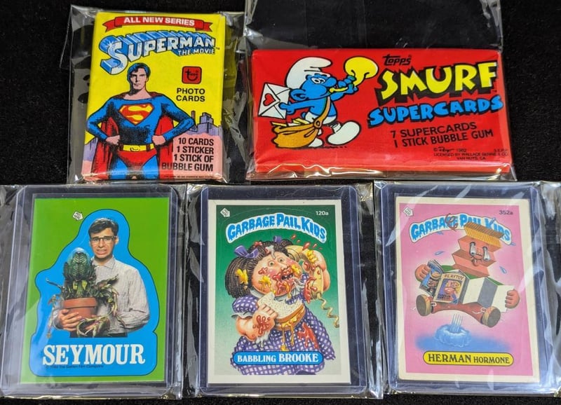 Supercards Include Smurf And Superman The Movie, Little Shop Of Horror Card, Babbling Brooke Garbage Pail Kids Card, Herman Hormone Garbage Pail Kids