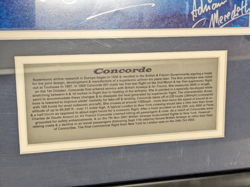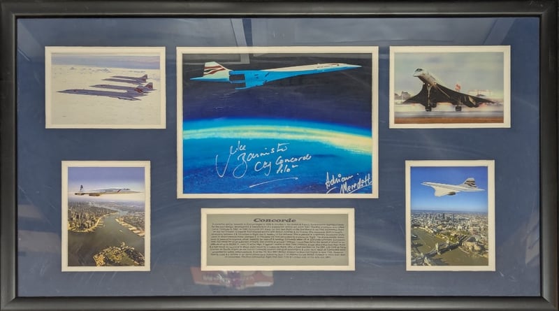 Frames Include Mike Bannister And Adrian Meredith Signed 'Concorde' First British Airways Flight Commemorative Frame, Engraved Plaque By Joe Spiteri With Photos, Etc.
