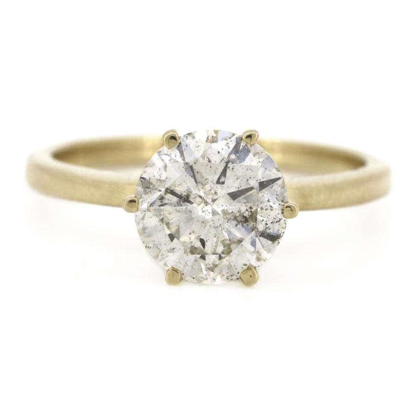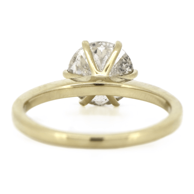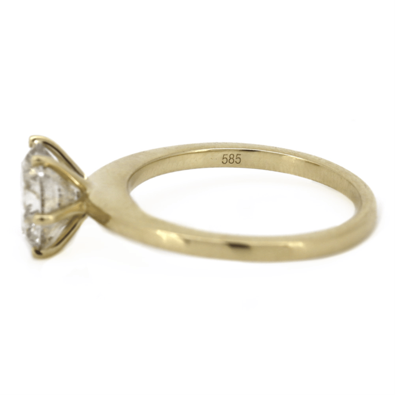 14K YELLOW GOLD, 2.03CT DIAMOND, SOLITAIRE RING. THE CENTRE FEATURES, ONE ROUND BRILLIANT CUT, TOP LIGHT BROWN, DIAMOND (2.03CT, P2-P3 CLARITY), 6 CLAW SET. RING SIZE M 1/2.