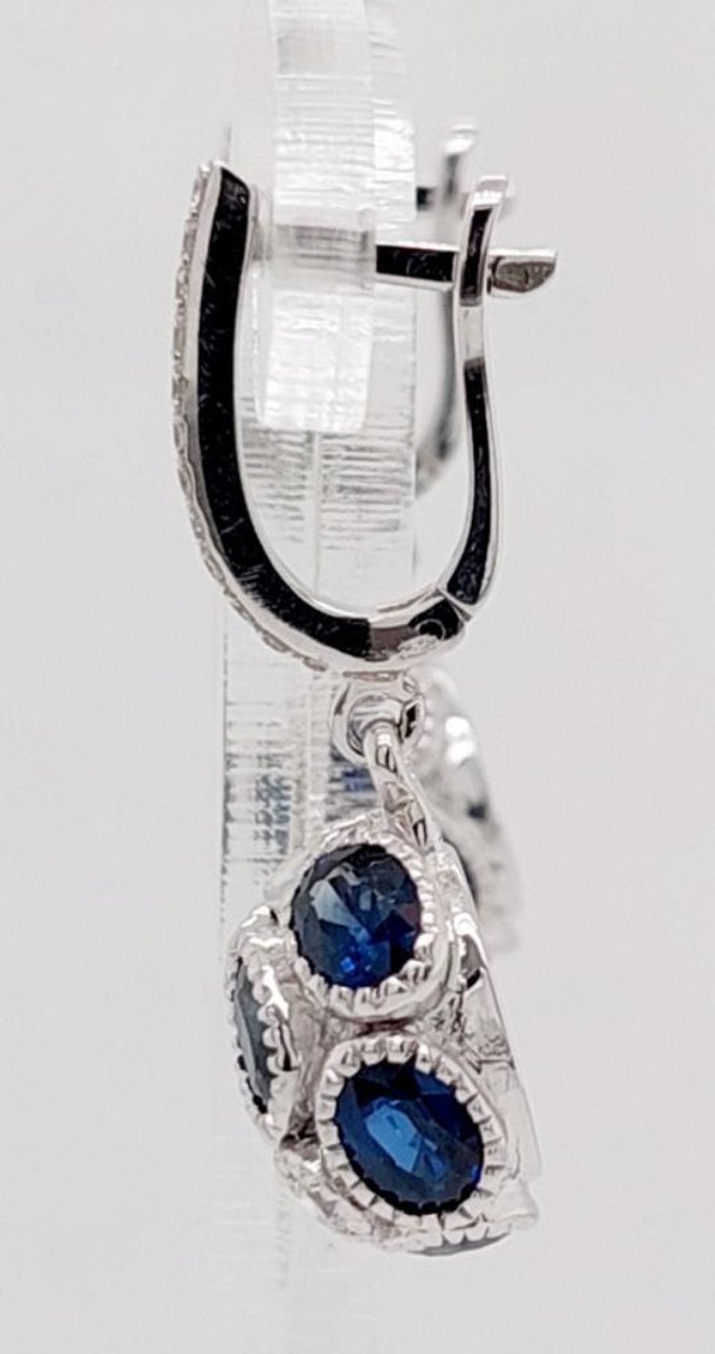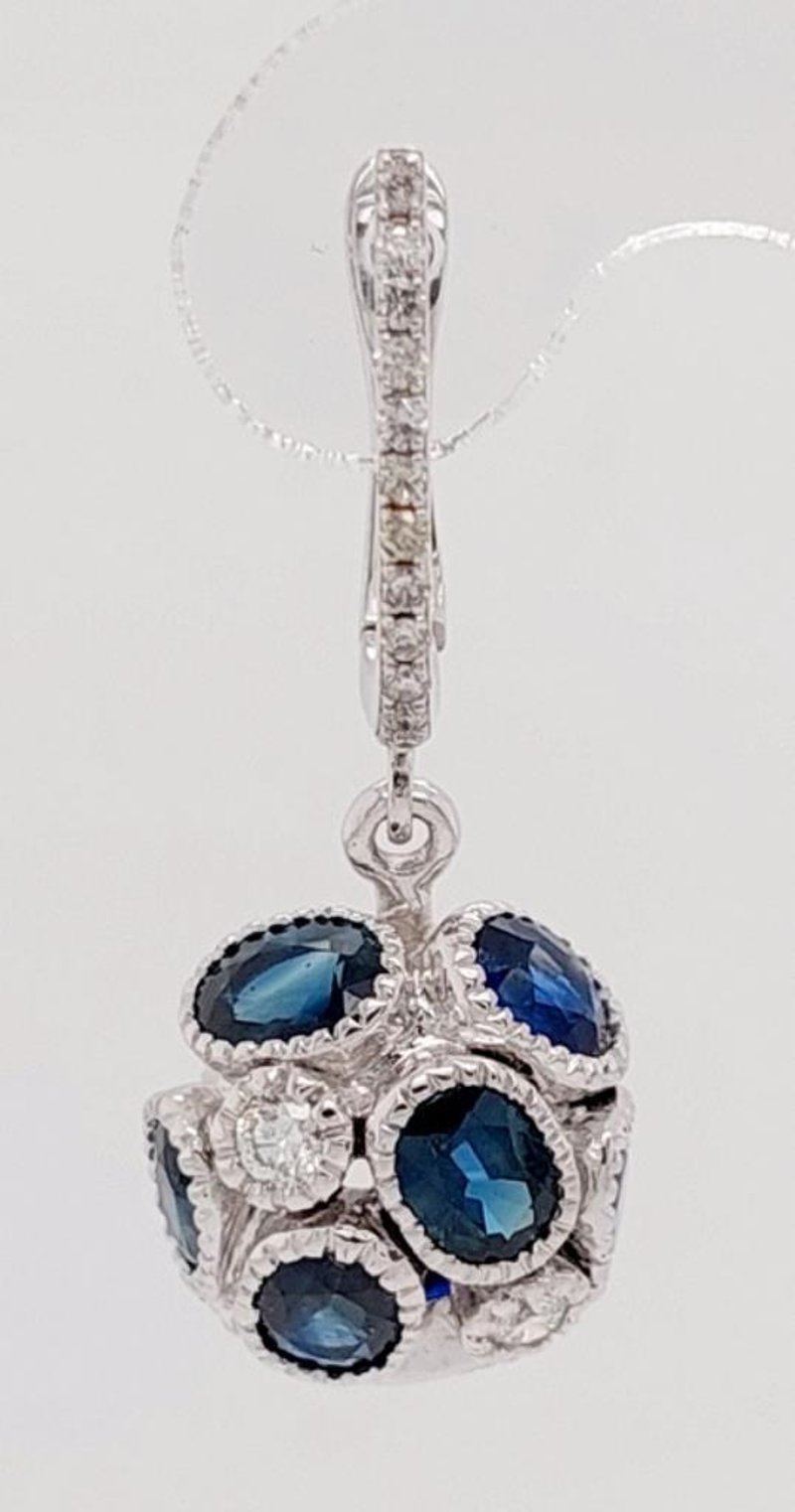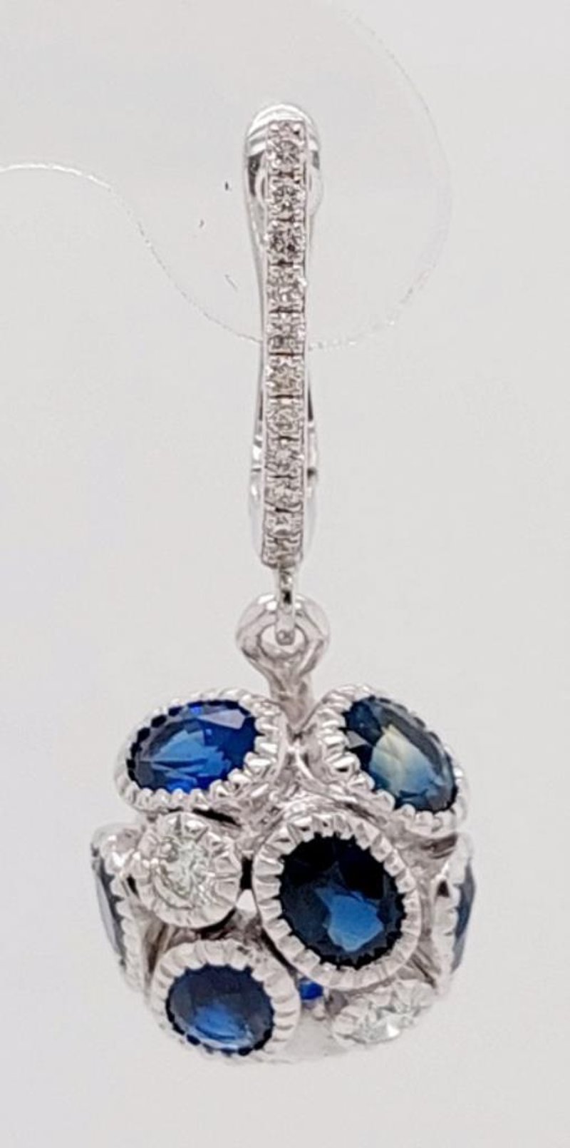 18CT WHITE GOLD BLUE SAPPHIRE AND DIAMOND DROP EARRINGS