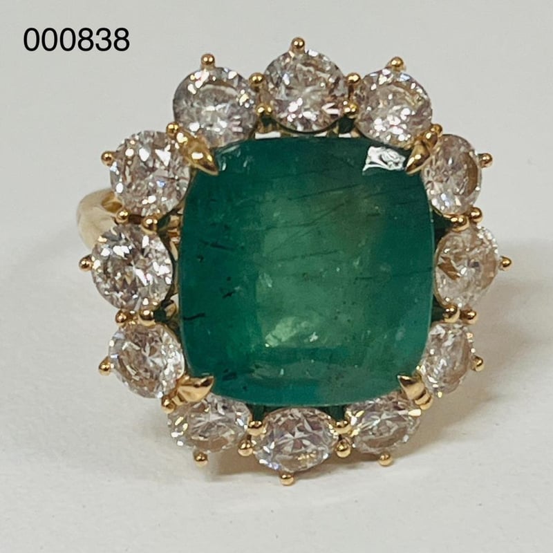 18CT YELLOW GOLD EMERALD AND DIAMOND RING
