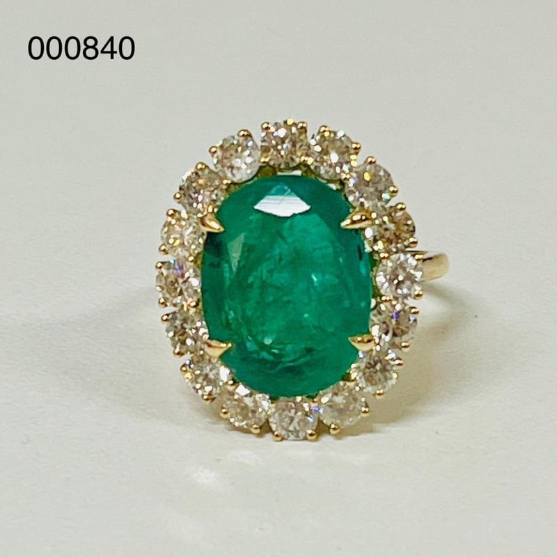 18CT YELLOW GOLD EMERALD AND DIAMOND RING