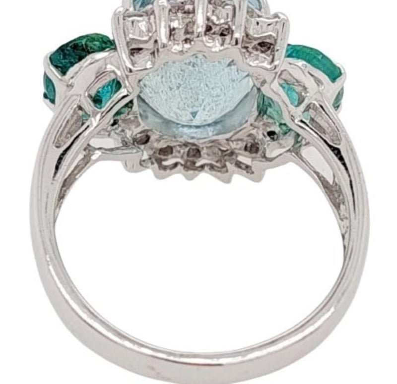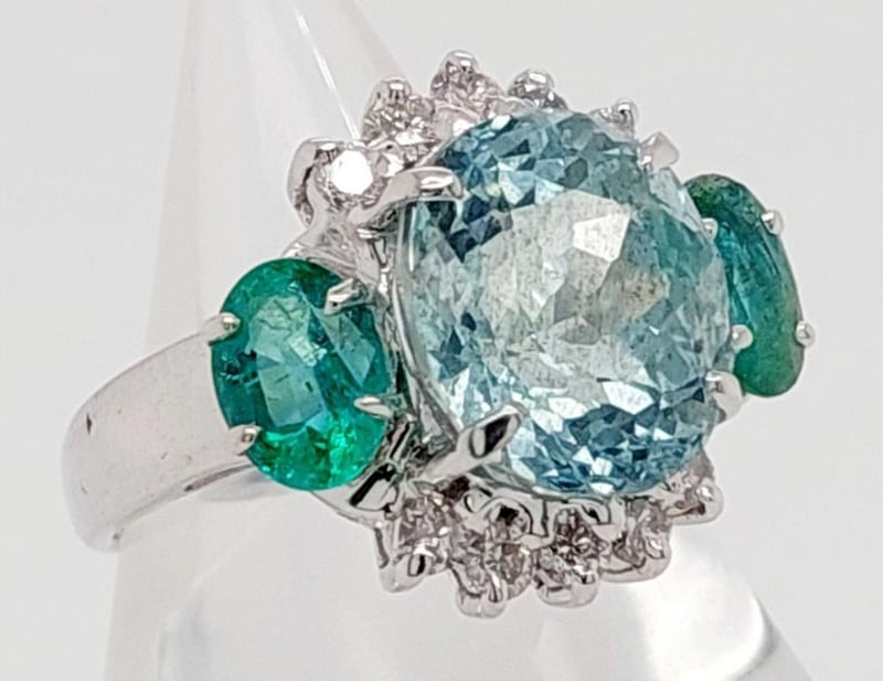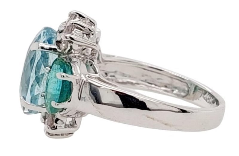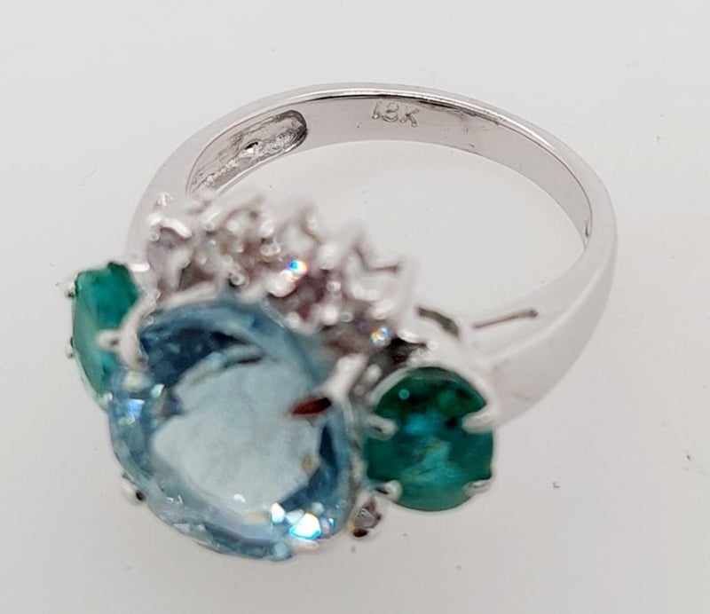 18CT WHITE GOLD AQUAMARINE, EMERALD AND DIAMOND RING Total Item Weight: 7.09gms This 18Ct White Gold Ring Features 1 X 6.10Ct Oval Cut Claw Set Aquamarine Measuring 11.9Mm X 10.5Mm X 8.3Mm And Blue In Colour With 2 X Oval Cut Claw Set Emeralds, 1.70Ct In Total Combined Weight And Green In Colour. This Ring Also Features 10 X Round Brilliant Cut Claw Set Diamonds, 0.40Ct In Total Combined Weight, Si1 In Clarity And G-H In Colour.Ring Size: O Markings: 18K Jewellery Valuations Provided By A Third Party Professional Not Directly Associated With Lloyds Auctions at AUD $20880This Insurance Valuation has been provided by a registered Jewellery Valuer and is intended for insurance purposes only. The valuation amount has no bearing on the auction value of the item. Any questions regarding the valuation should be directed to the issuing Valuer (refer to contact details on the certificate) as Lloyds have no association or relationship with the Valuer or the valuation amount contained within the valuation. Condition: Excellent- Refer Images 0162901+65CROSSDOCK