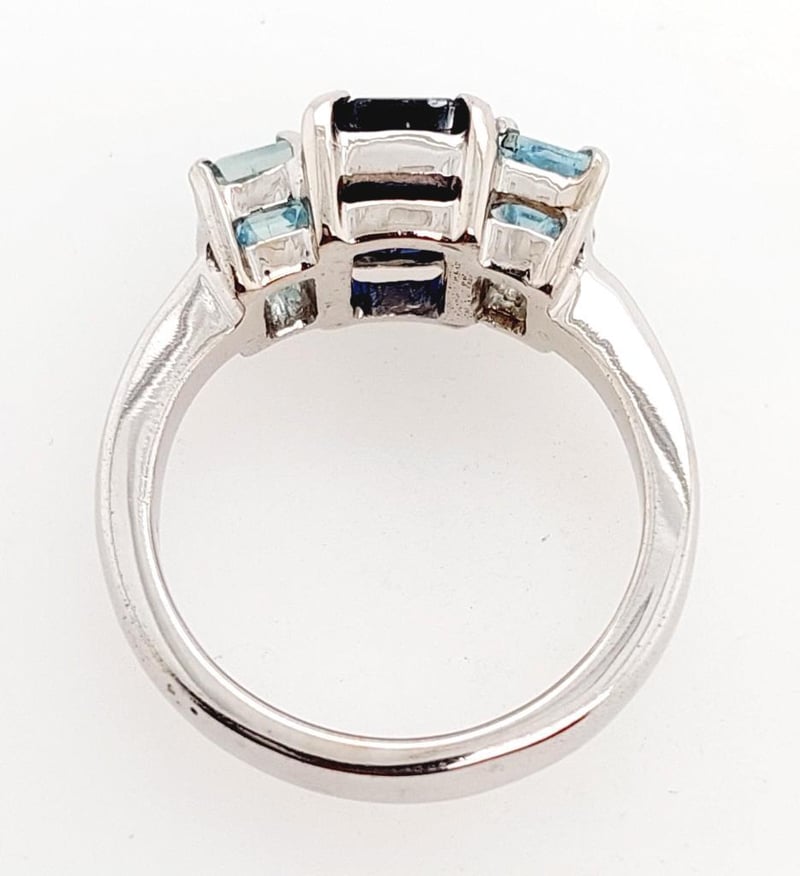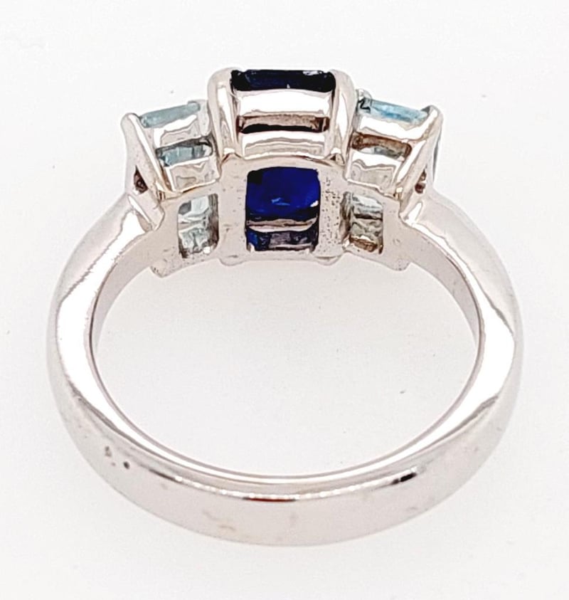 18CT WHITE GOLD SAPPHIRE AND AQUAMARINE SET RING