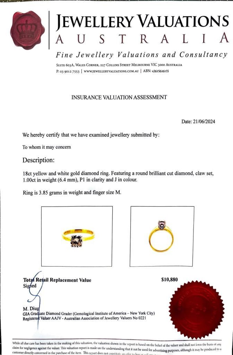This Insurance Valuation has been provided by a registered Jewellery Valuer and is intended for insurance purposes only. The valuation amount has no bearing on the auction value of the item. Any questions regarding the valuation should be directed to the issuing Valuer (refer to contact details on the certificate) as Lloyds have no association or relationship with the Valuer or the valuation amount contained within the valuation.