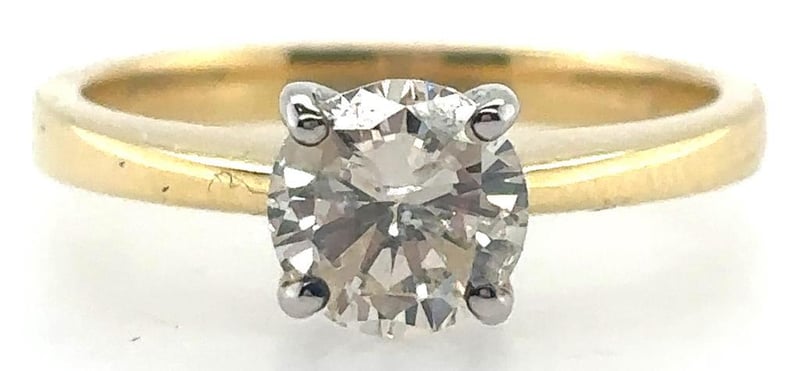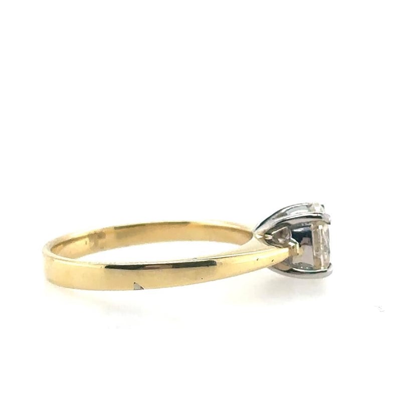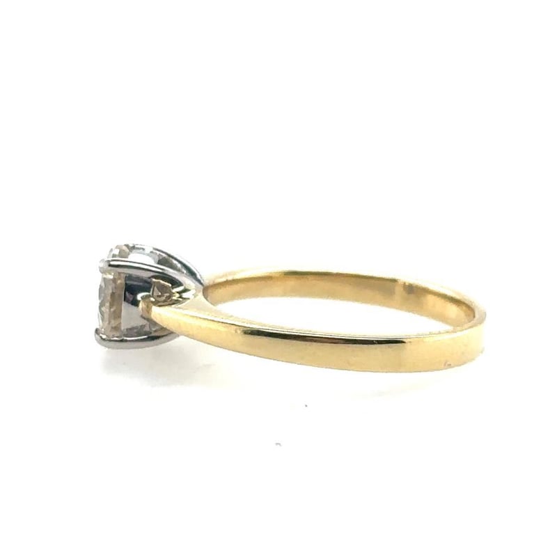 This 18Ct Yellow And White Gold Ring Features 1 X 1.0Ct Round Brilliant Cut Claw Set Diamond, Measuring 6.4Mm, Is P1 In Clarity And J In Colour.