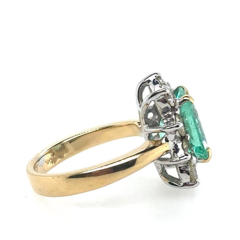 18CT TWO TONE GOLD EMERALD AND DIAMOND RING
