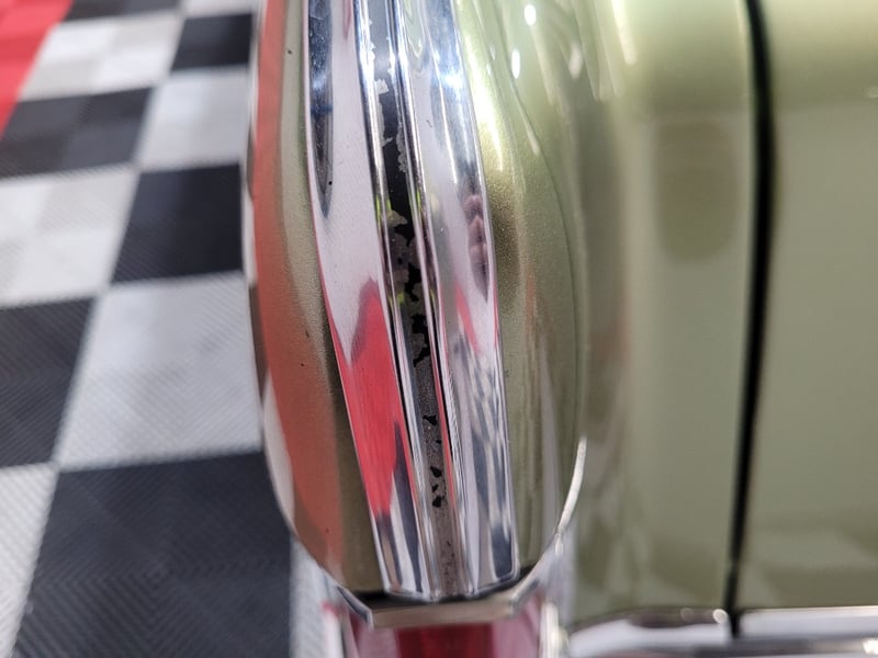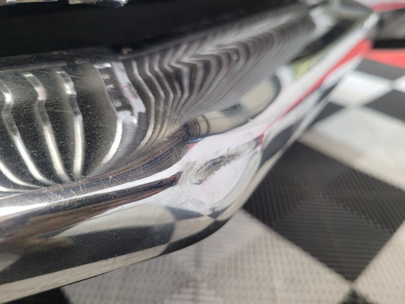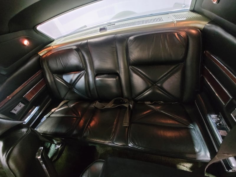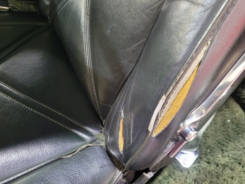Vendor advises power windows, power seats, tinted windows, leather interior, whitewall tires, carpeted floor, and spear wheel. Minor marks and wear, window rubber trim damage, interior minor rips and wear, headlights trim removed, and a small dent on the front bumper.