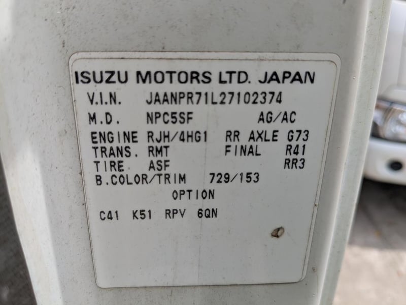 2002 Isuzu NPR light truck Year: 2002 Make: Isuzu Model: NPR200 turbo Body: Light Truck Odo: 252010 vendor advises (odo not displaying) Engine: 4.5L 4cyl Turbo Diesel Drive Type: RWD Transmission: Manual Colour: White VIN: JAANPR71L27102374 Stamped Engine: 909916 Extras: Starts and runs, Doesn’t drive needs to be towed, Vendor advises Dif centre is broken, Inspection recommended key# M22 Carrara
