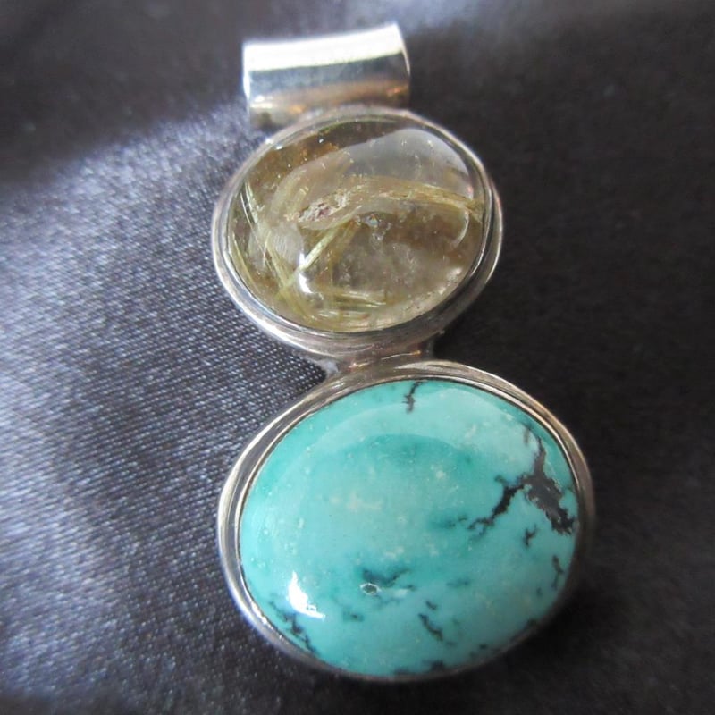 Estate Sterling Silver Natural Citrine & Turquoise Pendant (Stamped 925 & Makers Stamp) (approx 38cm long) (Boxed)