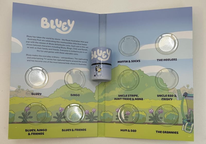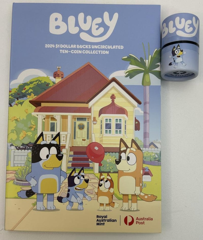 BLUEY 2024 UNCIRCULATED $1 DOLLARBUCKS TEN-COIN COLLECTION, INCLUDES FOLDER, PRODUCED BY THE ROYAL AUSTRALIAN MINT.