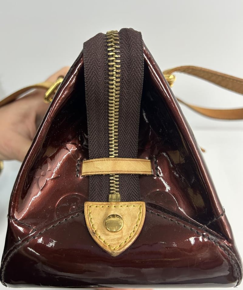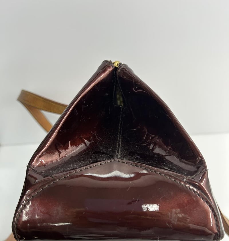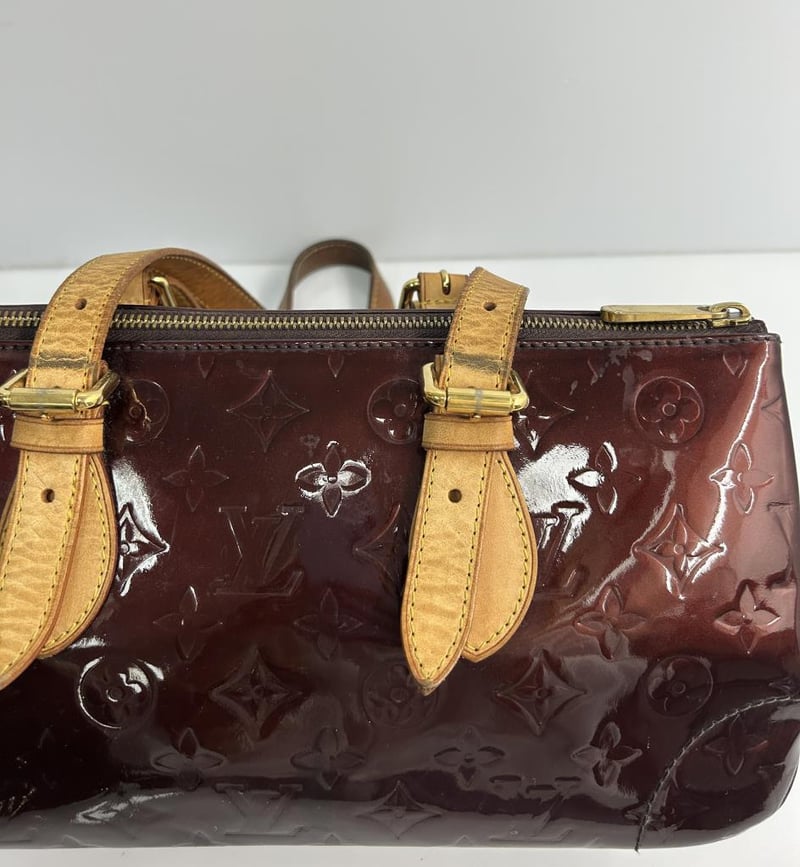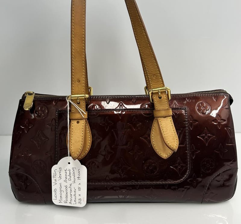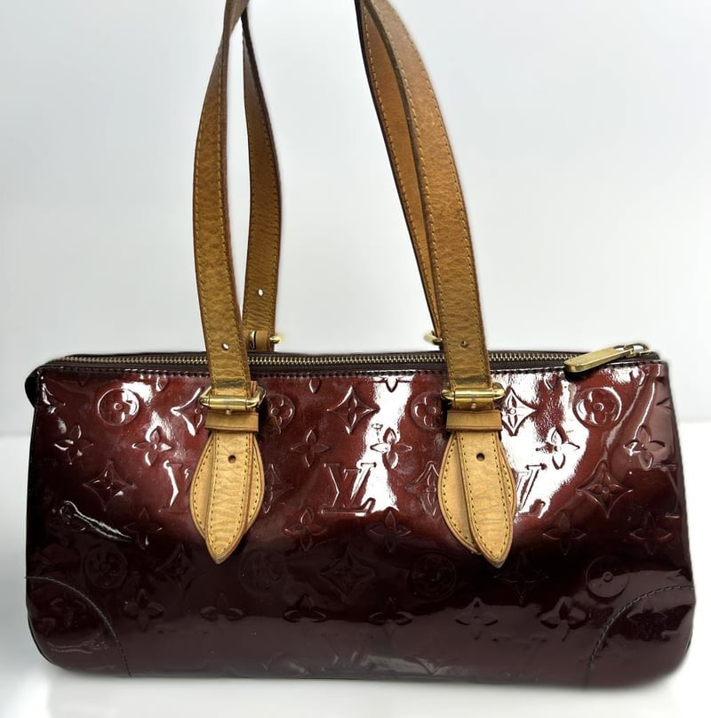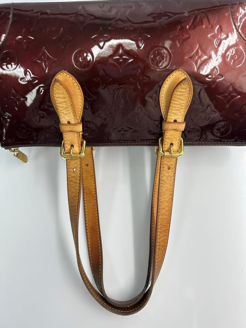 LOUIS VUITTON ROSEWOOD AVENUE HANDBAG, DEEP RED VERNIS EMBOSSED MONOGRAM LEATHER, ADJUSTABLE VACHETTA COWHIDE HANDLES, GOLD-TONE HARDWARE, TOP ZIP CLOSURE, EXTERNAL SLIP POCKET, BROWN TEXTILE LINING, 1 SLIP POCKET, BAG MEASURES 33 X 15 X 14CM, MADE IN FRANCE. NB: THE GLOSSY VERNIS LEATHER IS IN GOOD CONDITION BUT HAS SOME SUPERFICIAL SURFACE MARKS THAT DO NOT WIPE AWAY, THE UNTREATED, NATURAL VACHETTA LEATHER HAS DEVELOPED A RICH, DARK HONEY-BROWN PATINA FROM AGE & WEAR. THIS ITEM HAS BEEN PROFESSIONALLY VERIFIED AS A GENUINE PRODUCT AND COMES WITH ACCOMPANYING 3RD PARTY CERTIFICATE OF AUTHENTICITYCondition: Good - Refer To Images