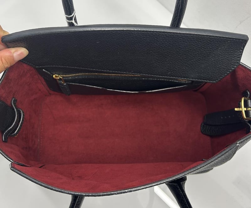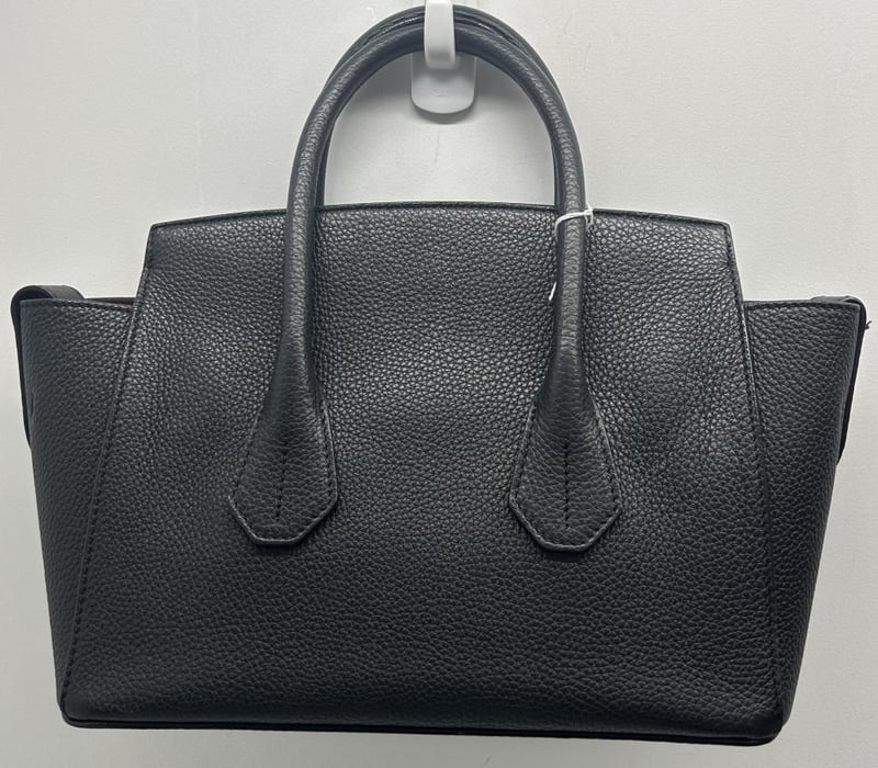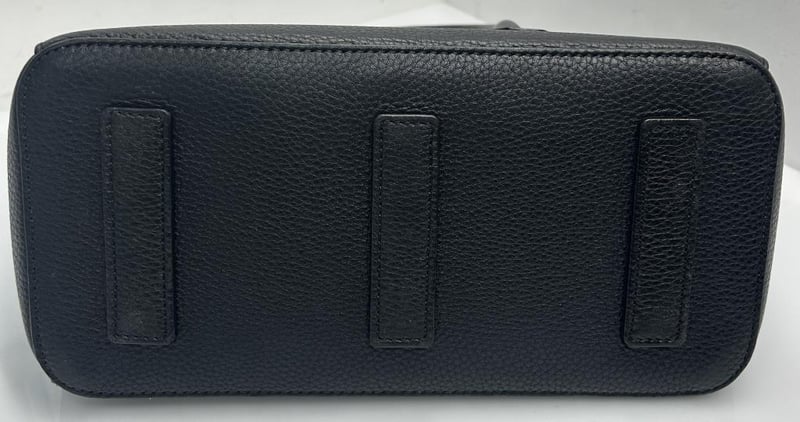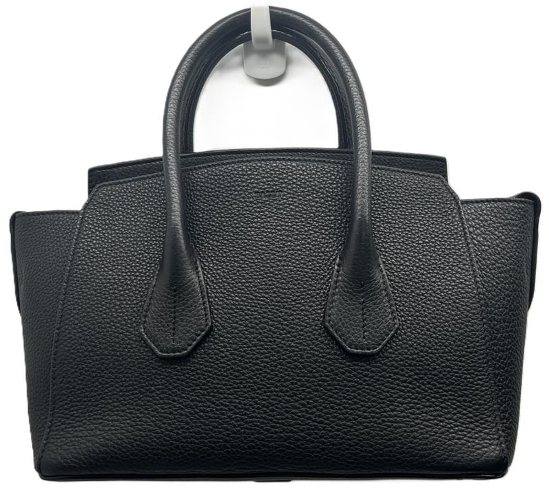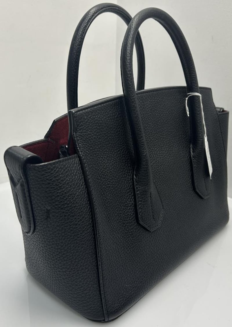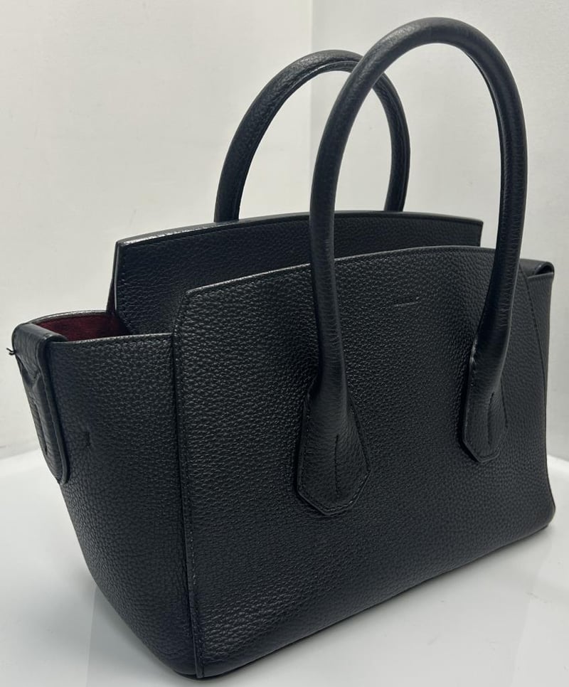 BALLY SOMMET BLACK PEBBLED LEATHER SATCHEL, DOUBLE ROLLED HANDLES, FOLD OVER FLAP CLOSURE, BURGUNDY LINING, INTERNAL ZIP POCKET, BAG MEASURES 28 X 20 X 14CM, MADE IN ITALY.