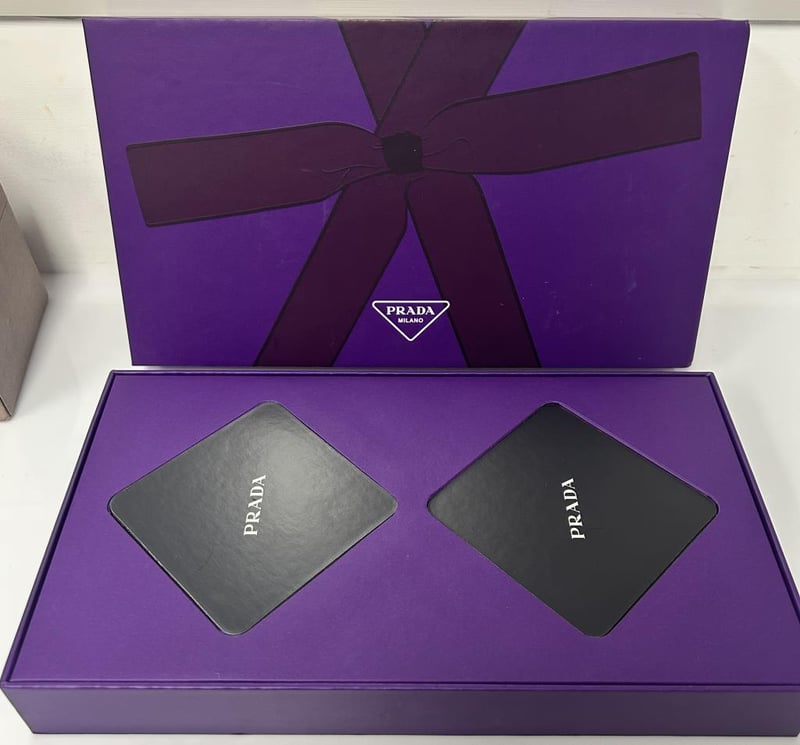 PRADA MEMORY CARDS IN PURPLE GIFT BOX. 50 PRADA DESIGNER CARDS.Condition: Good - Refer To Images