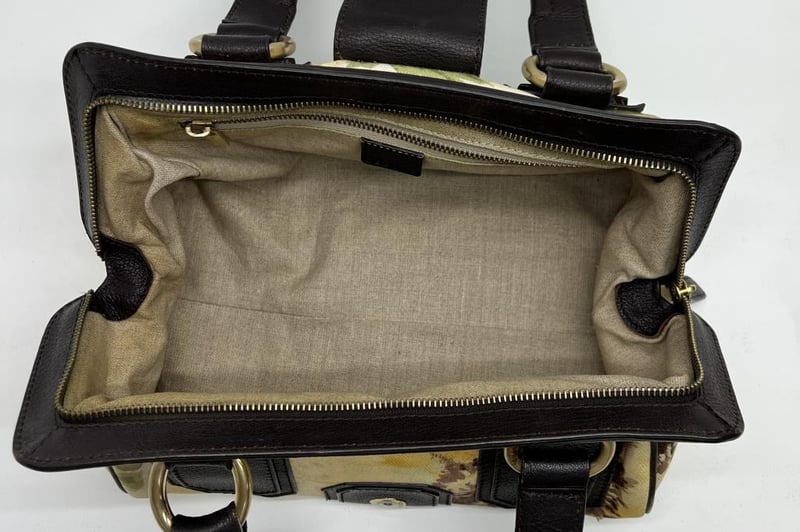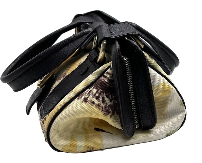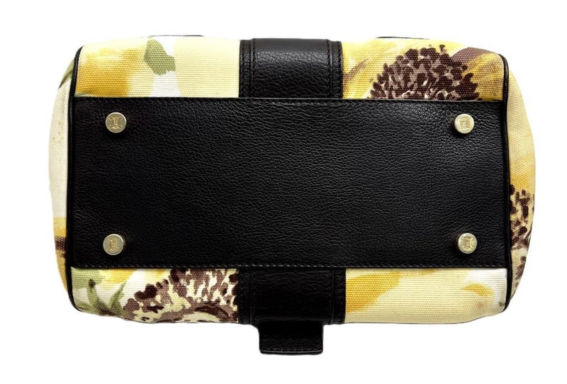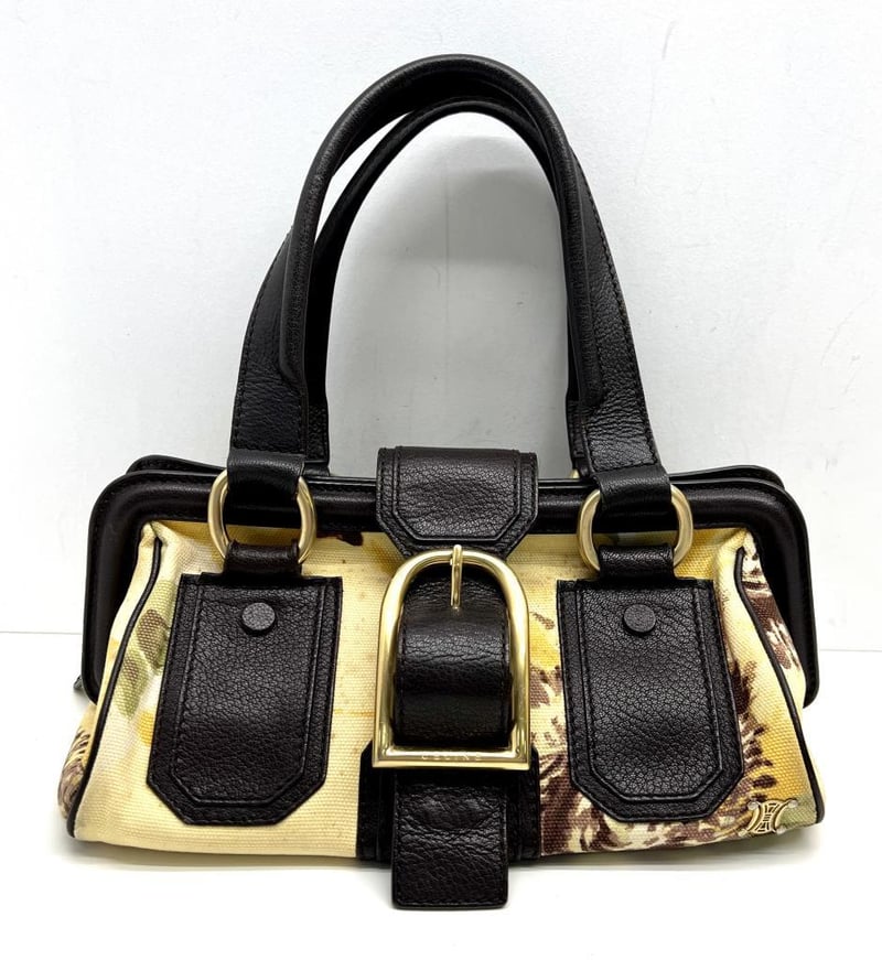 CELINE ELLA BROWN LEATHER & YELLOW CANVAS BAG, DARK BROWN LEATHER TRIM, 2 TOP HANDLES, TOP ZIP & FOLD OVER FLAP WITH BUCKLE SNAP LOCK CLOSURE, GOLD TONE HARDWARE, INTERNAL ZIP POCKET, TEXTILE LINING, MEASURES 28 X 13 X 18CM, MADE IN ITALY, THIS ITEM HAS BEEN PROFESSIONALLY VERIFIED AS A GENUINE PRODUCT AND COMES WITH ACCOMPANYING 3RD PARTY CERTIFICATE OF AUTHENTICITY