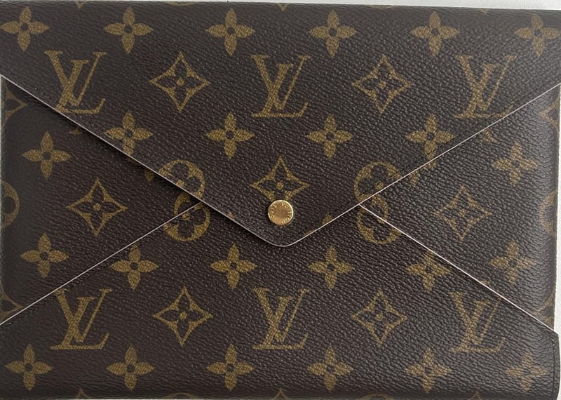 LOUIS VUITTON MONOGRAM ENVELOPE POCHETTE, PINK LINING, HOT STAMP G.S, POCHETTE MEASURES 23 X 16 X 1.5CM, MADE IN FRANCE, INCLUDES DUST COVER. THIS ITEM HAS BEEN PROFESSIONALLY VERIFIED AS A GENUINE PRODUCT AND COMES WITH ACCOMPANYING 3RD PARTY CERTIFICATE OF AUTHENTICITY