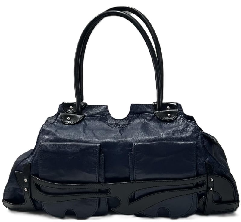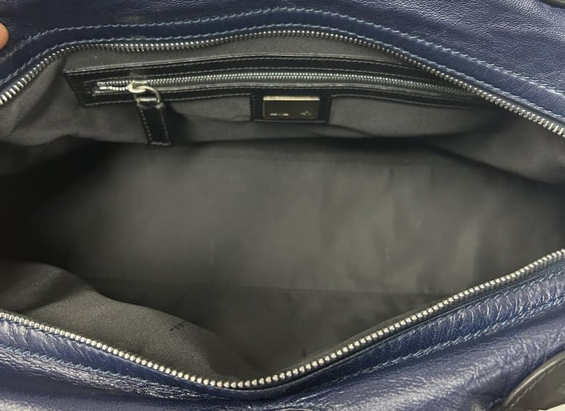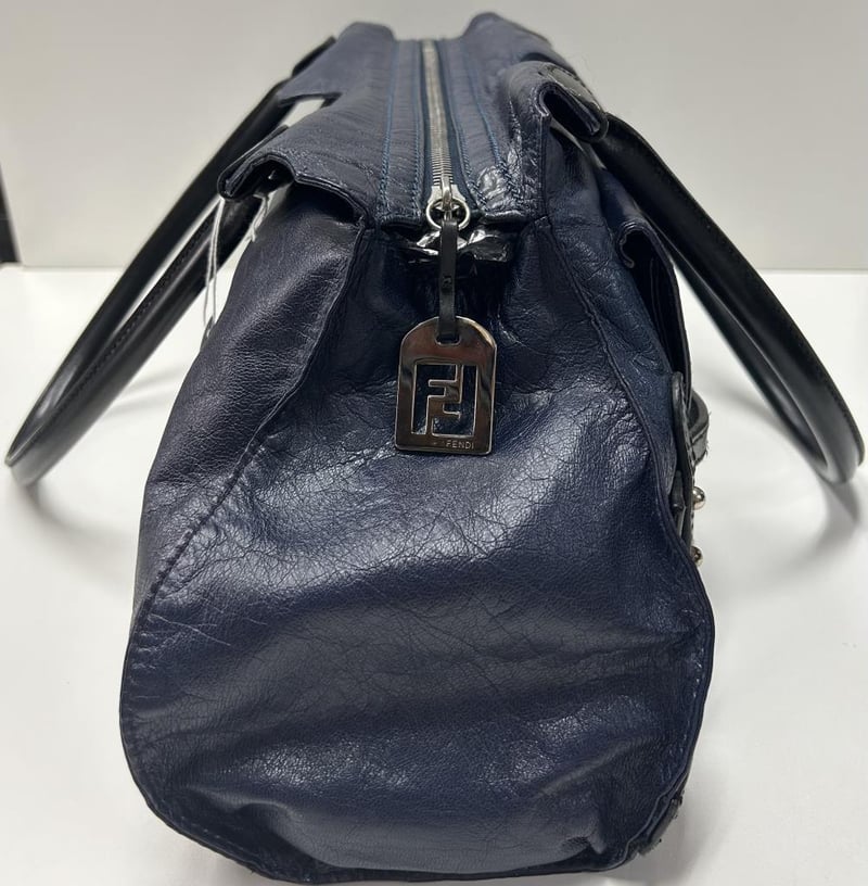 FENDI NAVY/BLACK LEATHER SHOULDER HANDBAG, 2 ROLLED TOP HANDLES, TOP ZIP CLOSURE WITH FF METAL PULL TAG, 2 FRONT POCKETS WITH FOLD OVER FLAP CLOSURE, BLACK RIB NYLON LINING, MEASURES W32XH25XD12CM, MADE IN ITALY. THIS ITEM HAS BEEN PROFESSIONALLY VERIFIED AS A GENUINE PRODUCT AND COMES WITH ACCOMPANYING 3RD PARTY CERTIFICATE OF AUTHENTICITY.Condition: Good - Refer To Images
