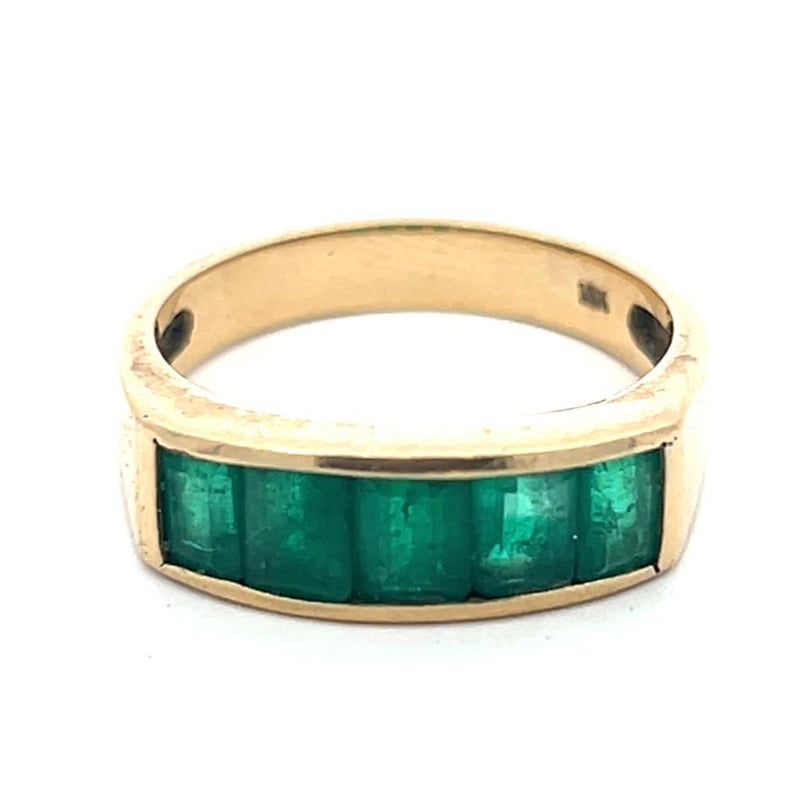18CT YELLOW GOLD 1.80CT EMERALD BAND, 5 EMERALD CUT EMERALDS CHANNEL SET IN ROW, ESTIMATE TOTAL EMERALD WEIGHT 1.80CT, STAMP 18KT, RING WEIGHT 4.59GRAMS. THIS ITEM HAS BEEN PROFESSIONALLY VERIFIED AS A GENUINE PRODUCT AND COMES WITH ACCOMPANYING 3RD PARTY CERTIFICATE OF AUTHENTICITY Condition: Good - Refer To Images