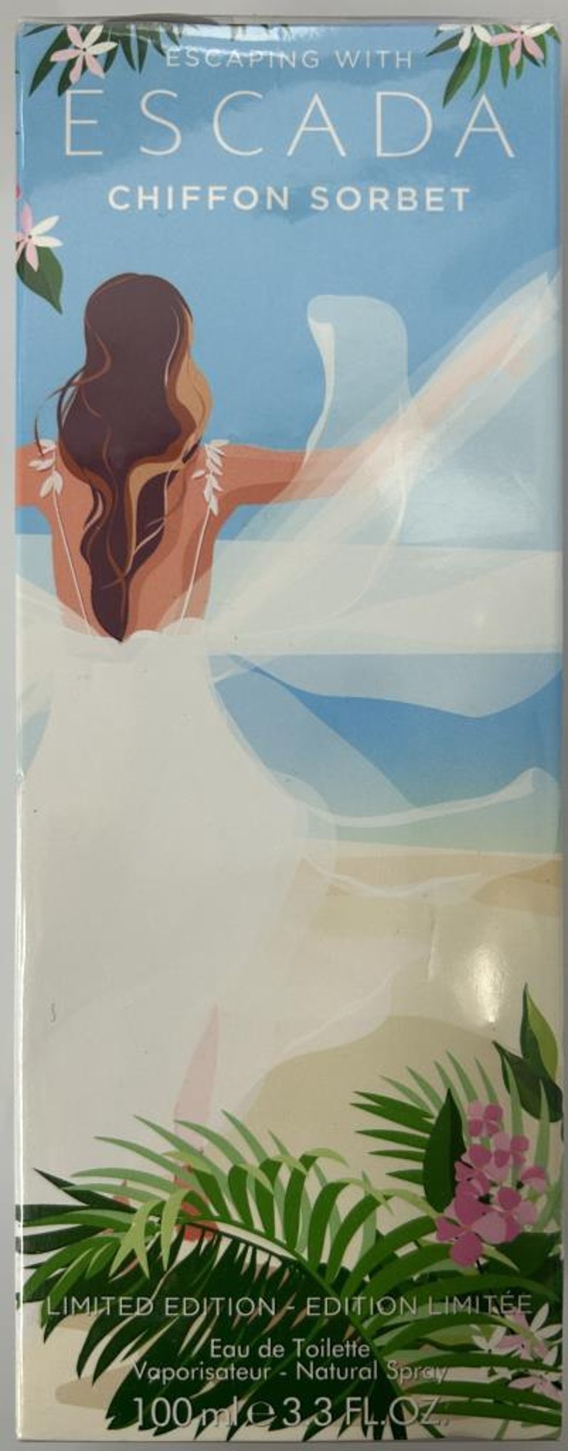 ESCADA CHIFFON SORBET EAU DE TOILETTE 100ML (LIMITED EDITION) IS A LIGHT, DREAMY FRAGRANCE THAT CAPTURES THE CAREFREE ESSENCE OF SUMMER. INSPIRED BY THE GENTLE MOVEMENT OF CHIFFON AND THE REFRESHING SWEETNESS OF SORBET, THIS SCENT EVOKES A SENSE OF EFFORTLESS ELEGANCE AND JOYFUL ESCAPE. THE FRAGRANCE OPENS WITH BRIGHT, JUICY NOTES THAT MELT INTO A SOFT FLORAL HEART, BALANCED BY A DELICATE BASE THAT LINGERS WITH SUBTLE SOPHISTICATION. PRESENTED IN ESCADA’S SIGNATURE ARTISTIC PACKAGING, FEATURING A BREEZY SEASIDE DESIGN, THIS LIMITED-EDITION 100ML (3.3 FL. OZ) EAU DE TOILETTE IS BRAND NEW IN FACTORY SEALED BOX.