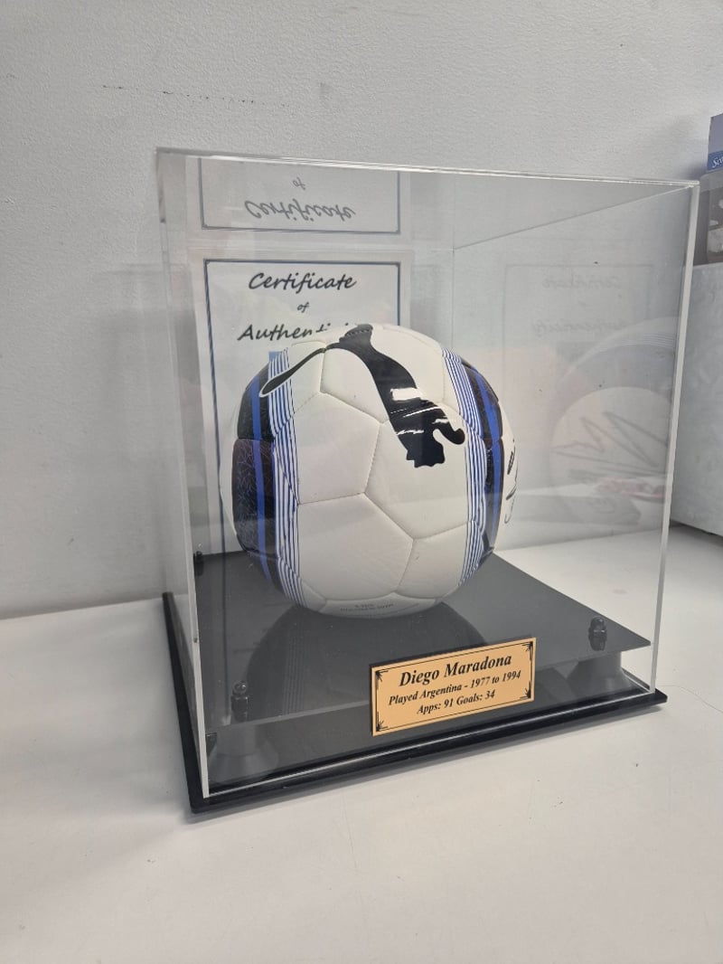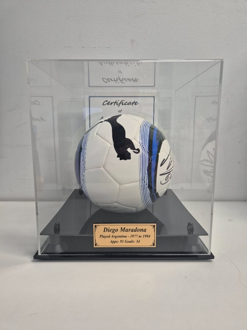 DIEGO MARADONA SIGNED FOOTBALLItem Size: Height: 31cm, Width: 28cm, Depth: 28cmIncludes Certificate Of AuthenticityPlayed Argentina - 1977 To 1994Apps: 81 Goals: 34Condition: Good - Refer To Images488300+14