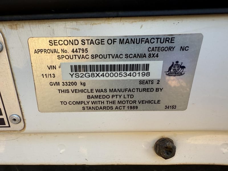 2013 Scania G440 Combination Recycler Hydro Excavation Truck Price Guide - $450,000 - $500,000 (Based on standard condition unmodified, excluding attachments and/or additions) Year: 11/2013 Make: Scania Model: G440 Body: Vac Truck Configuration: 8x4 Hours Indicated: 2745 hrs Odometer Indicated: 119,666 kms (When Photographed) Transmission: Automatic Suspension: Airbag Seats: 2 Engine: 6 Cylinder Turbo Diesel Engine Number: Not located VIN: YS2G8X40005340198 Description/Extras: - Jetting, Vacuum, Recycling and Hydro Excavation System all in 1 - Spoutvac/ Kroll Recycler Unit (PDF attached below) - Aircon - Power steering - Power windows - Power Mirrors - CD/USB/AUX Player - UHF - Reverse camera - Kroll 8x4 - 13,000 Waste tank - Remote boom with fittings and extensions lots of spares - Continuous water recycling system with automated filter cleaning - Pressure hose on reel and gun - Emergency stops - Isolators - Tool boxes - Storage boxes - Closed storage compartment - Marks and scratches from wear - Truck has always been maintained and serviced in house GVM: 33,200 kgs GCM: 40,000 kgs Note: Please see photos & inspect for damages. Buyer is responsible for the removal of asset. As Standard Auction Practice all Vehicles are Sold Unregistered without Number Plates LOCATION: Berrimah, NT CONTACT: Nektarios Samiotis on 0477 237 839 or [email protected]