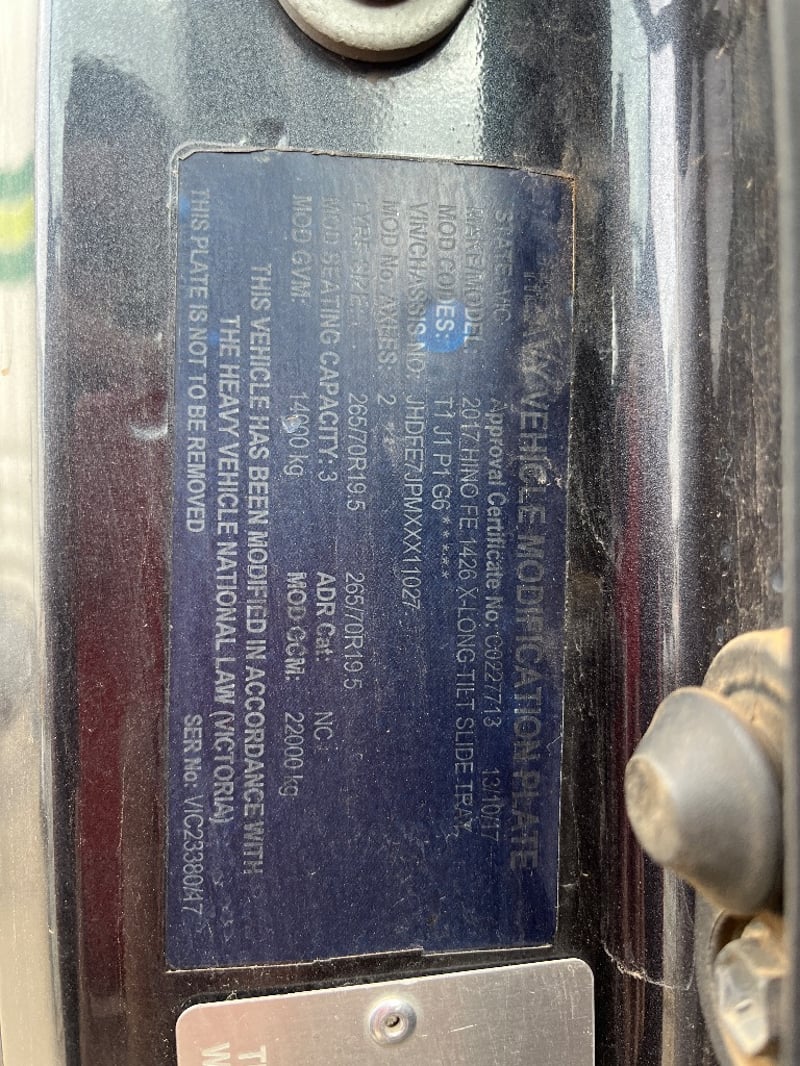2017 Hino FE 500 Series 1426 X-Long Tilt and Slide Tray
