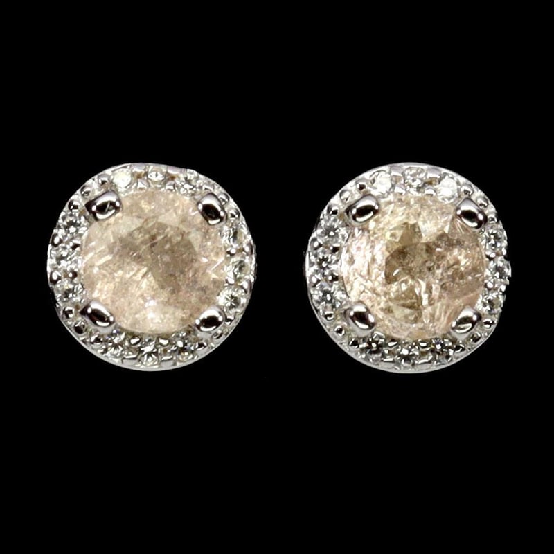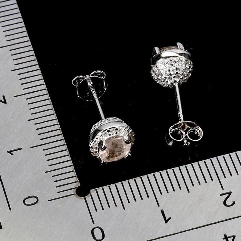 NATURAL MORGANITE EARRINGS. Natural Morganite Earrings. Made In Solid Sterling Silver And Plated In14K White Gold. Features Natural Peachy Morganite And Sparkling Czs. Earrings Measure 7X7Mm Condition: Good - Refer Images 0488346+24
