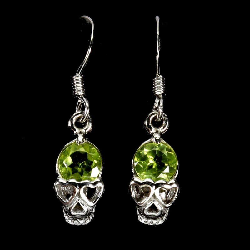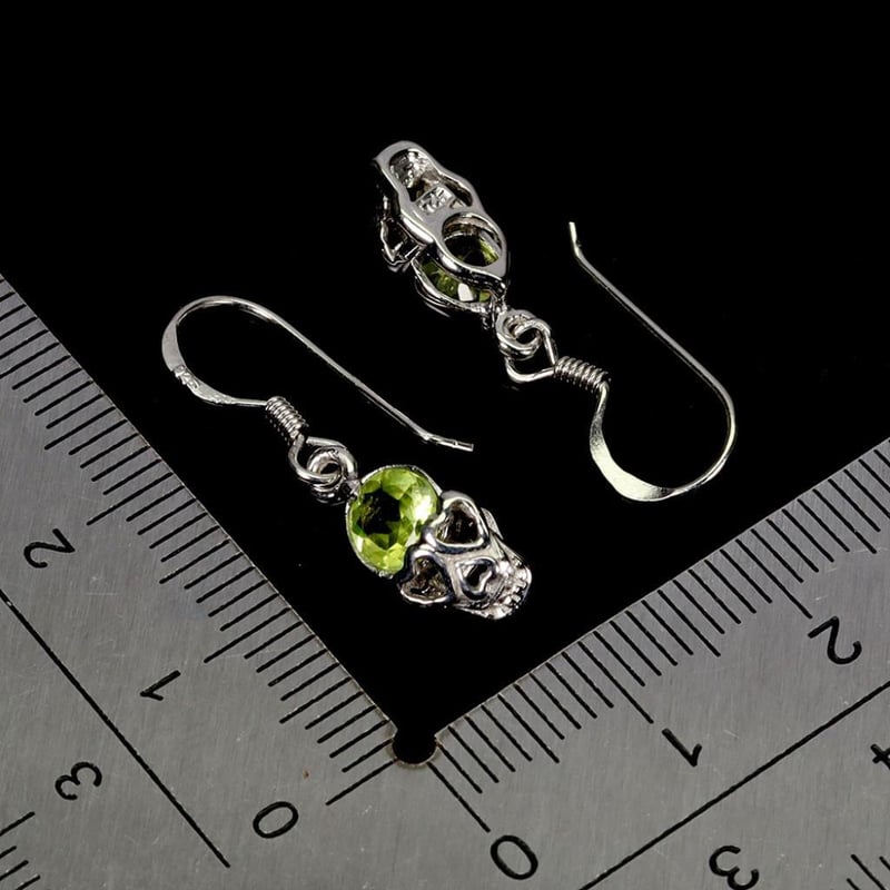 Natural Peridot Skull Earrings. Made In Solid Sterling Silver And Plated In14K White Gold. Features Natural Green Peridot. Earrings Measure 26.0 X 6.0 Mm.