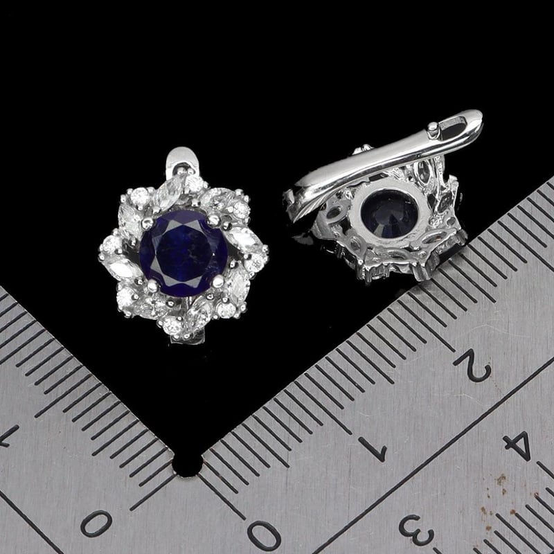 Natural Midnight Blue Sapphire Earrings. Made In Solid Sterling Silver And Plated In14K White Gold. Features Natural Midnight Blue Sapphires And Sparkling Czs. Earrings Measure 14X12Mm.