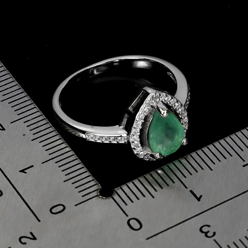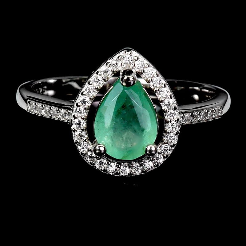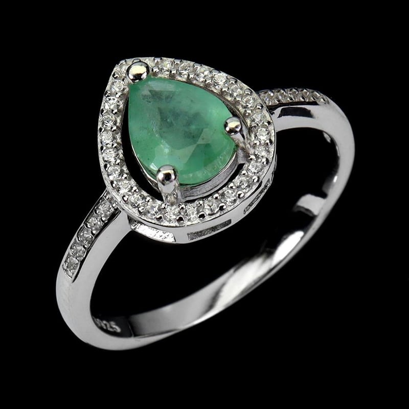 Natural Emerald Ring. Made In Solid Sterling Silver And Plated In14K White Gold. Features Natural Green Emerald And Sparkling Czs. Ring Size 8