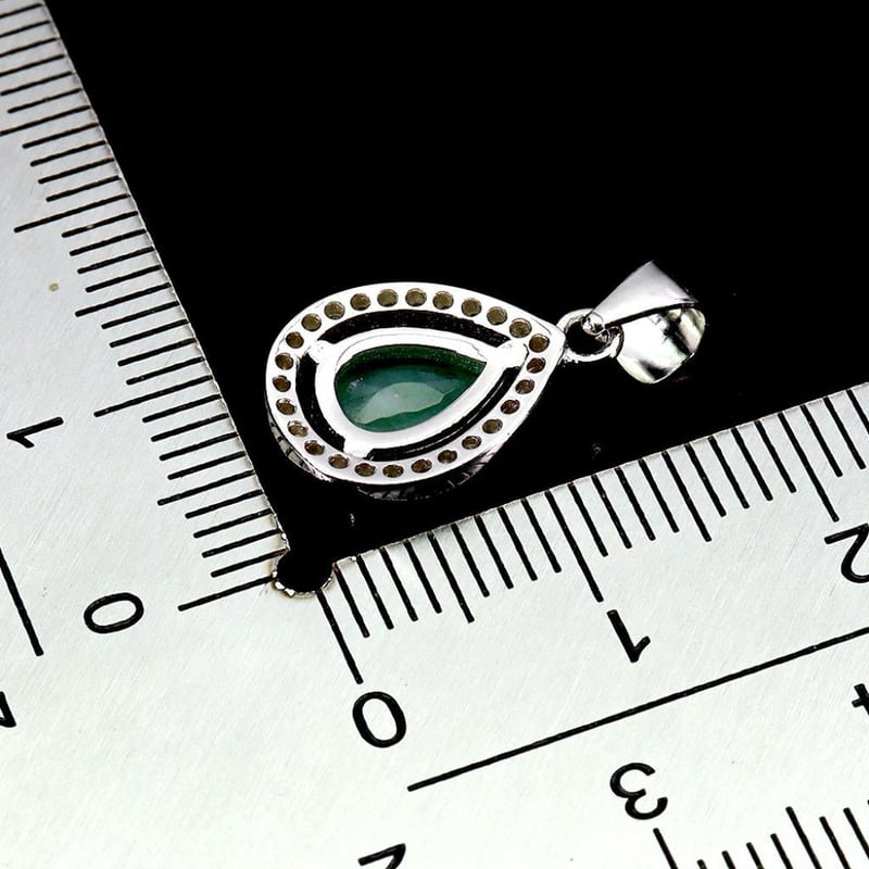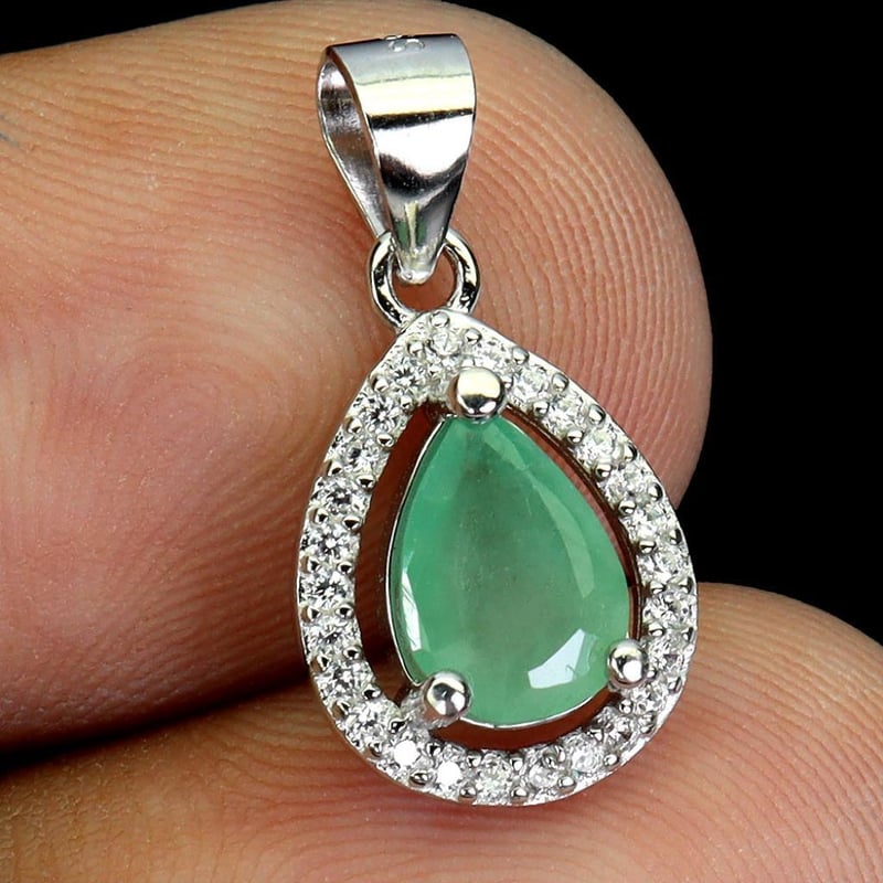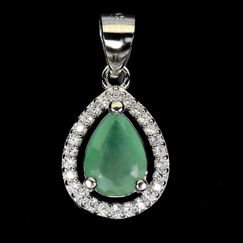 Natural Emerald Pendant. Made In Solid Sterling Silver And Plated In14K White Gold. Features Natural Green Emerald And Sparkling Czs. Pendant Measures 19.0 X 10.0 Mm.