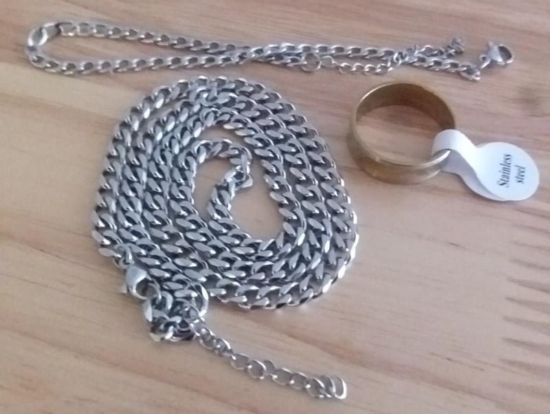 STAINLESS STEEL UNISEX NECKLACE BRACELET AND RING