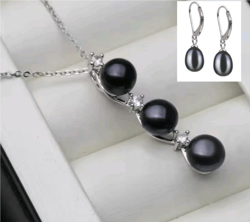 TAHITIAN BLACK FRESHWATER PEARL NECKLACE WITH EARRINGS
