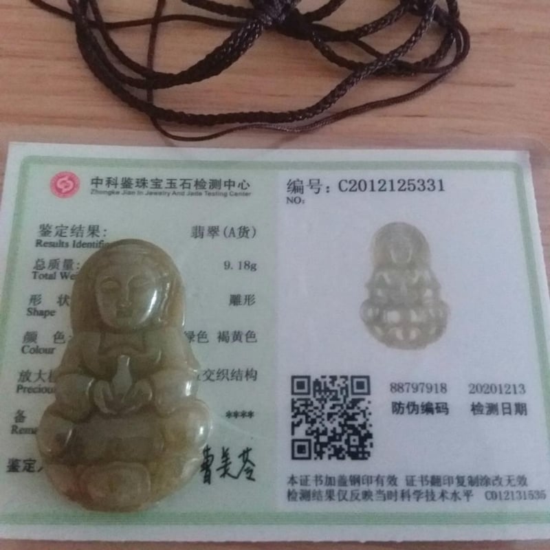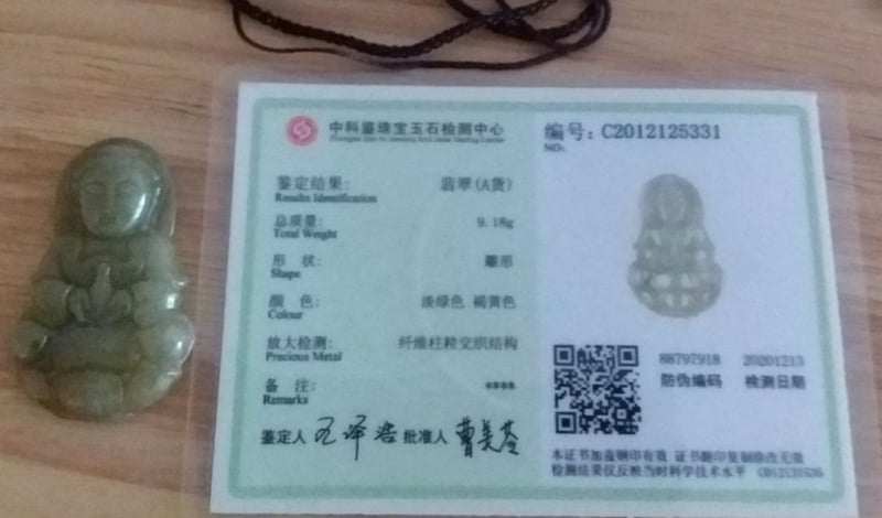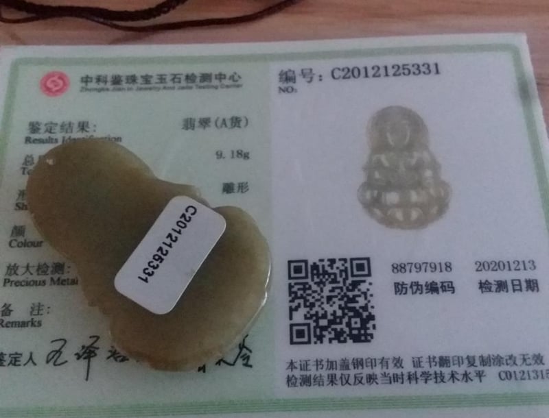 CERTIFIED GREEN CHINESE JADE BUDDHA PENDANT ON CORD