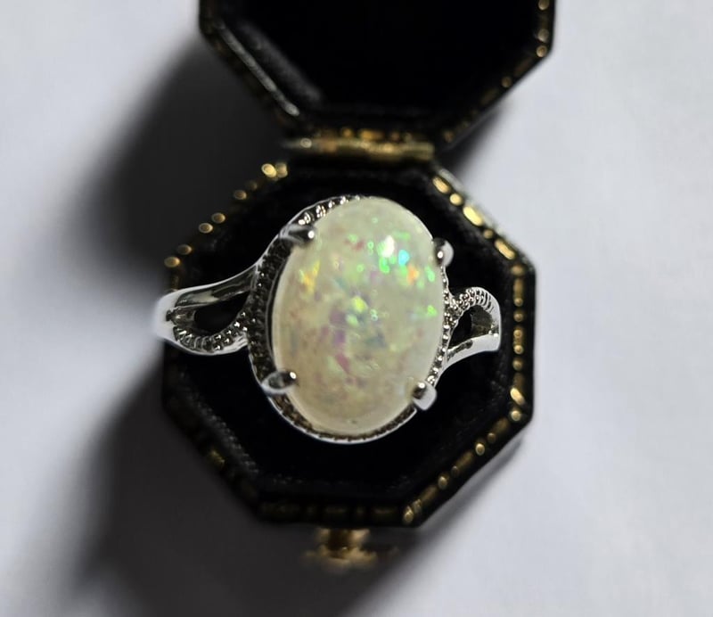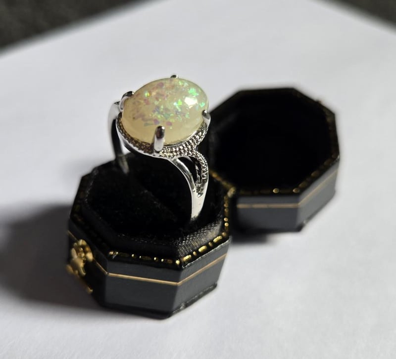 Large Opal Set In A Silver Ring. Approx Size W