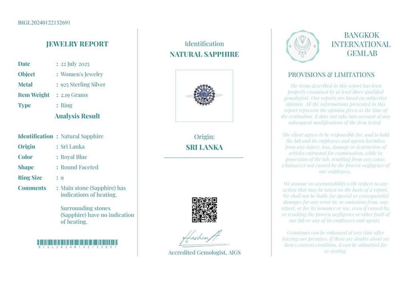 Comments : Main Stone (Sapphire) Has Indications Of Heating.