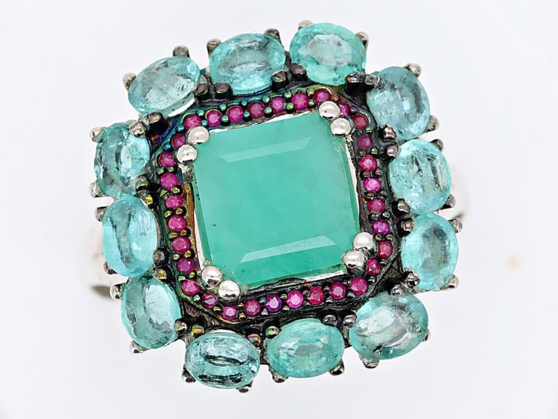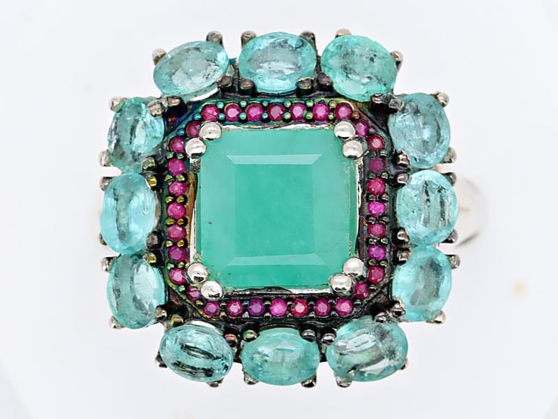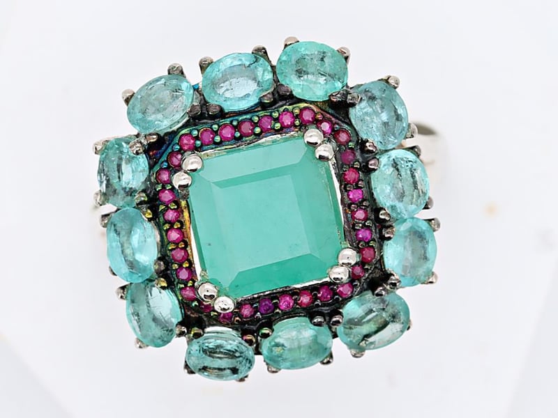 NATURAL ZAMBIAN EMERALD & BURMESE RUBY (UNHEATED) RING ON 925 SILVER - WITH CERTIFICATE