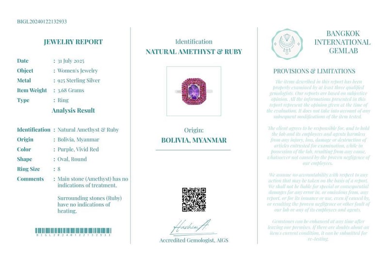 Comments : Main Stone (Amethyst) Has No Indications Of Treatment.