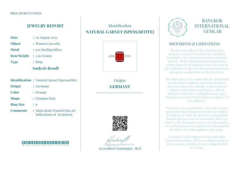 Comments : Main Stone (Garnet) Has No Indications Of Treatment.
