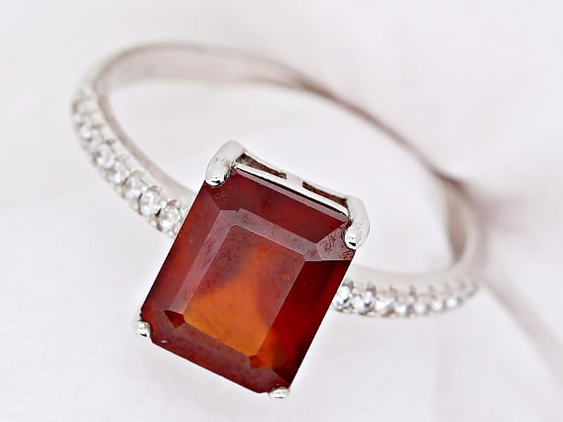 NATURAL GARNET (SPESSARTITE) RING ON 925 SILVER - WITH CERTIFICATE