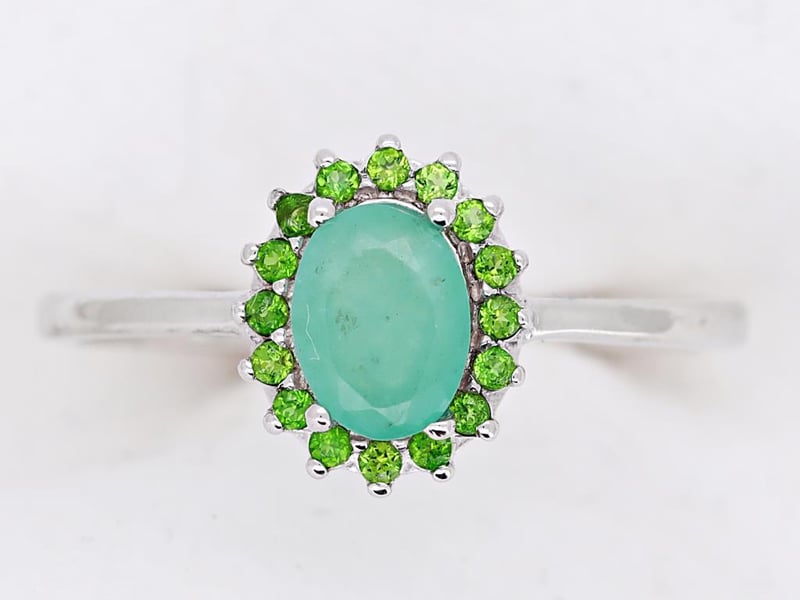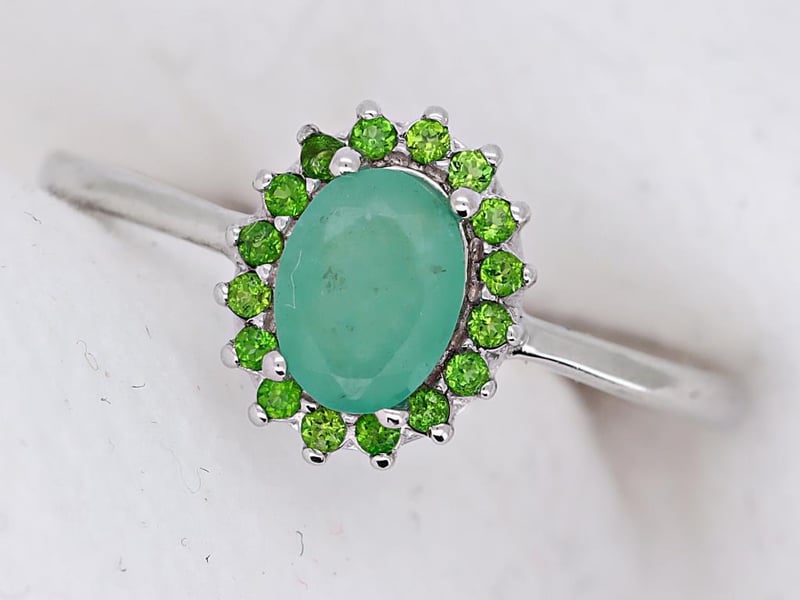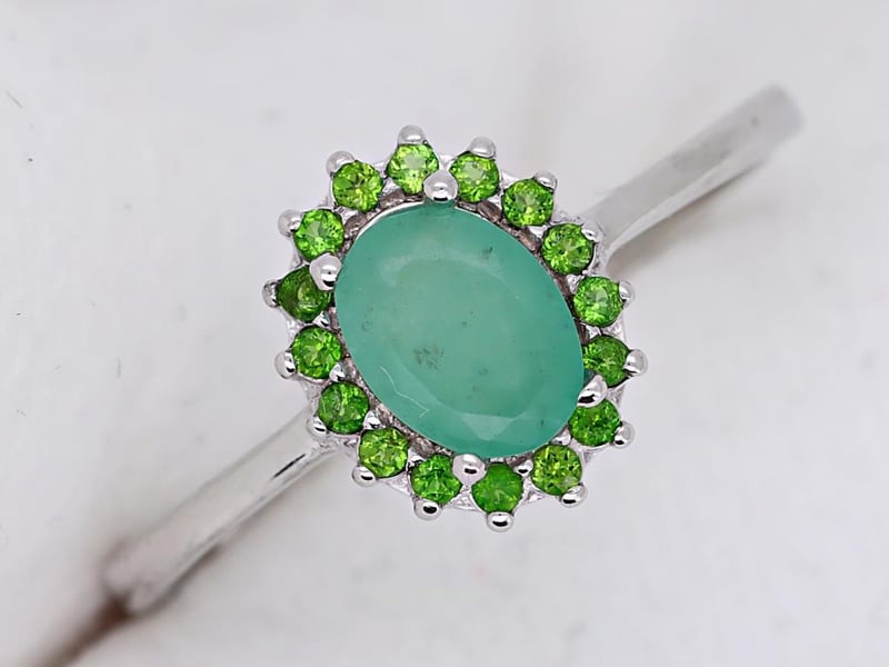 NATURAL ZAMBIAN EMERALD & TSAVORITE RING ON 925 SILVER - WITH CERTIFICATE