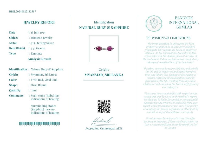 NATURAL BURMESE RUBY & SRI LANKAN SAPPHIRE (UNTREATED) EARRINGS ON 925 SILVER - WITH CERTIFICATE