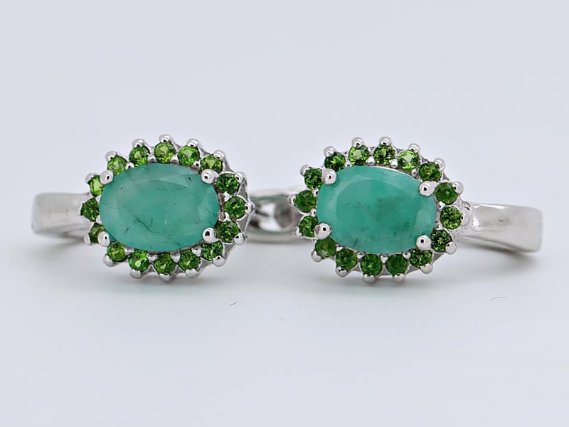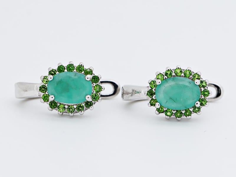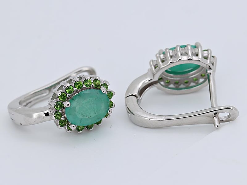 NATURAL EMERALD & TSAVORITE (UNTREATED) EARRINGS ON 925 SILVER - WITH CERTIFICATE
