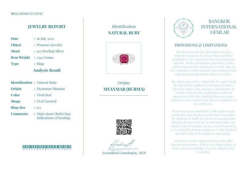 Comments : Main Stone (Ruby) Has Indications Of Heating.