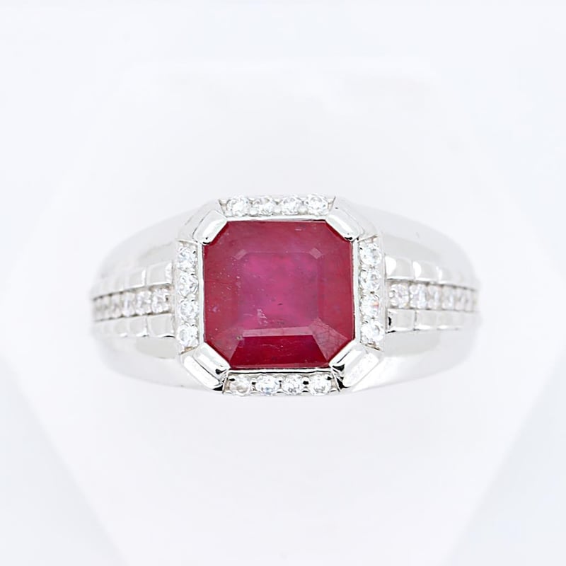 NATURAL BURMESE RUBY RING ON 925 SILVER - WITH CERTIFICATE