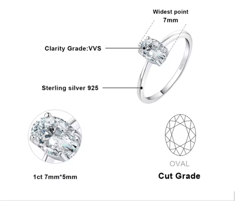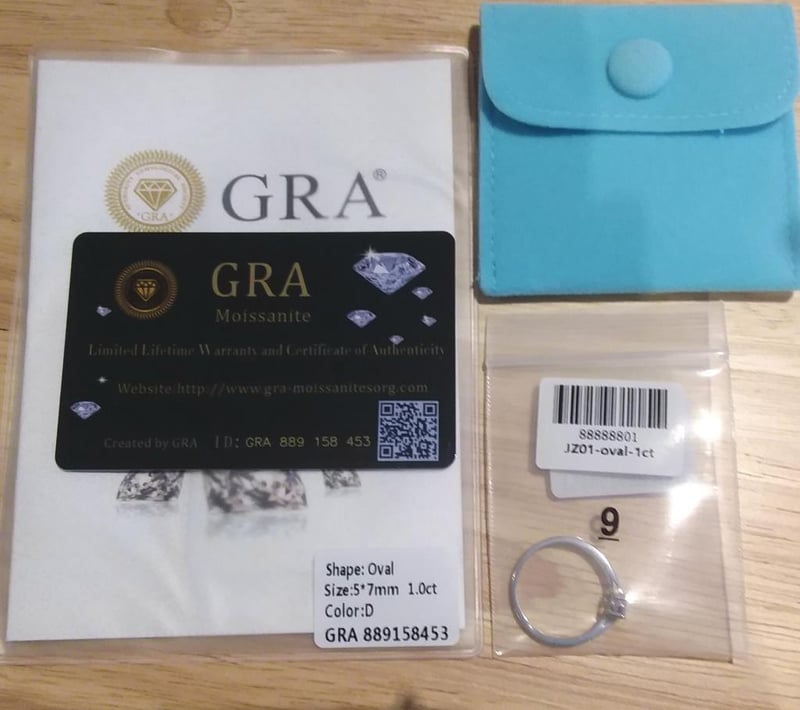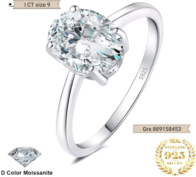 GRA CERTIFIED 925 SILVER MOISSANITE ENGAGEMENT RING 1 CT SIZE 9