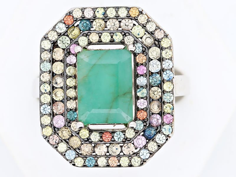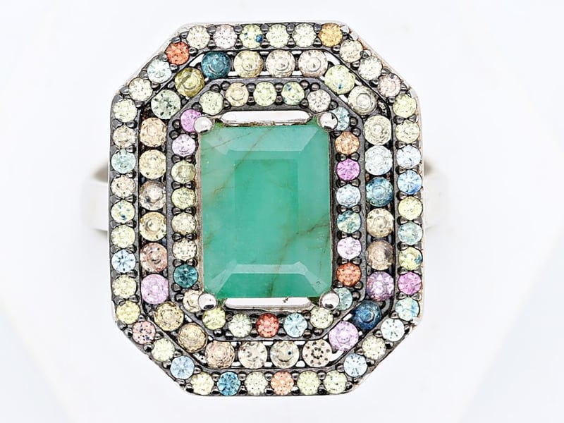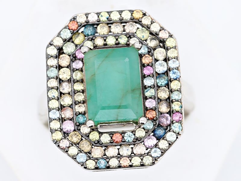 NATURAL ZAMBIAN EMERALD & SRI LANKAN SAPPHIRE (UNTREATED) RING ON 925 SILVER - WITH CERTIFICATE