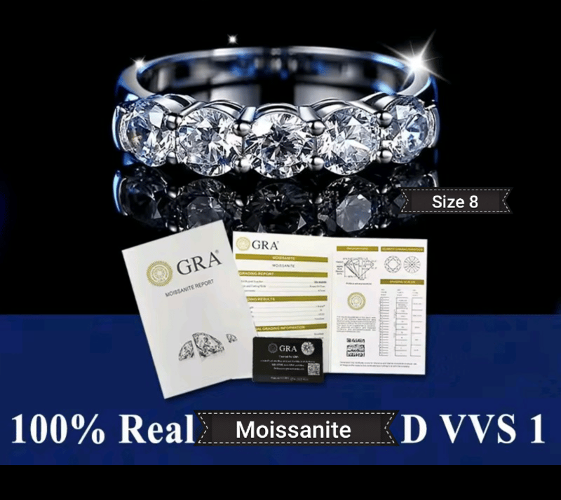 GRA CERTIFIED 925 SILVER MOISSANITE WEDDING RING SIZE 8