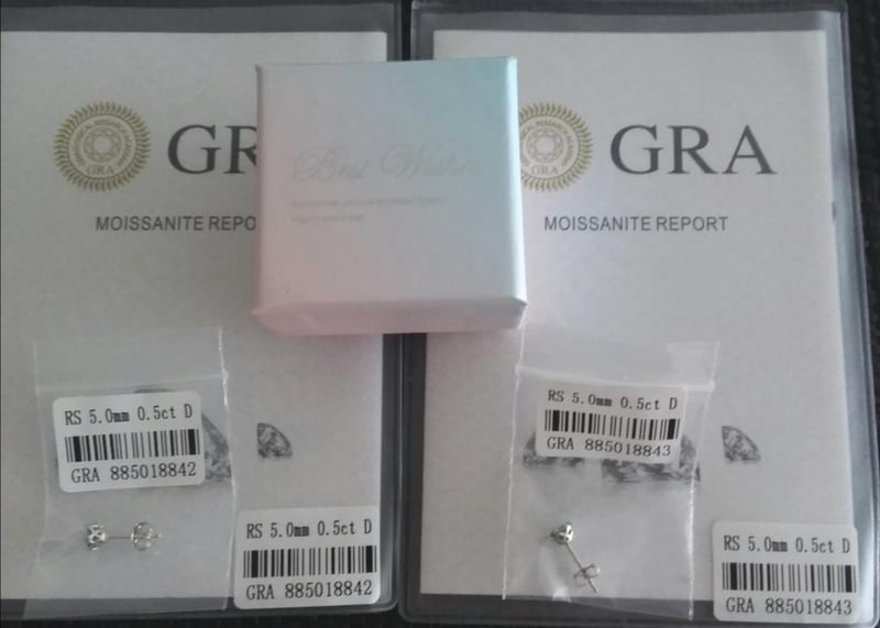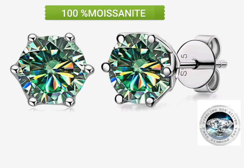 GRA CERTIFIED BLUE GREEN MOISSANITE STUD EARRINGS Condition: Good - Refer Images 0162996+9FC