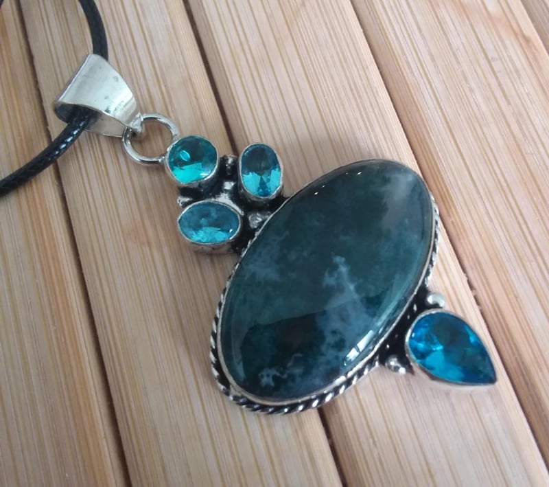 925 SILVER ETHNIC STYLE GEMSTONE PENDANT ON BLACK CORD